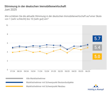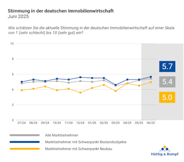 Die Stimmung in der deutschen Immobilienwirtschaft hat sich im Juni 2025 spürbar gegenüber dem Tiefpunkt im März verbessert.